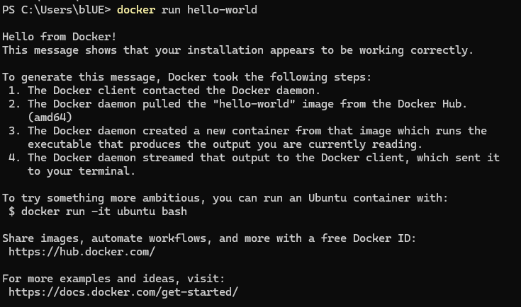 기본적으로 run 이란 명령어는 Docker 이미지로부터 새로운 컨테이너를 생성하고 실행하라는 명령이다.