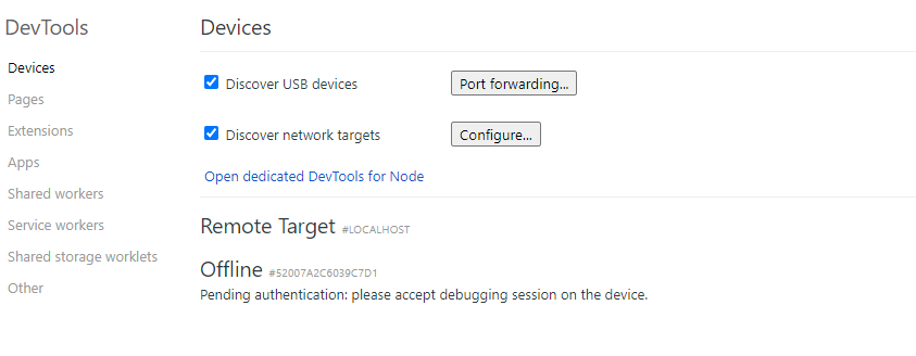 크롬에 들어가서 chrome://inspect/ 를 주소창에 치면