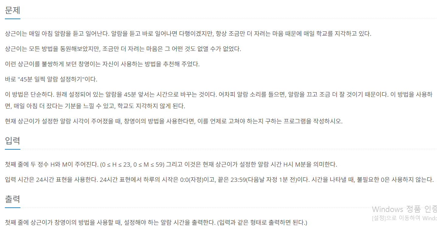 2884번: 알람 시계