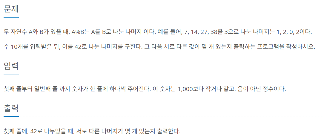 → value%42 를 통해 나머지 값을 set 에 저장