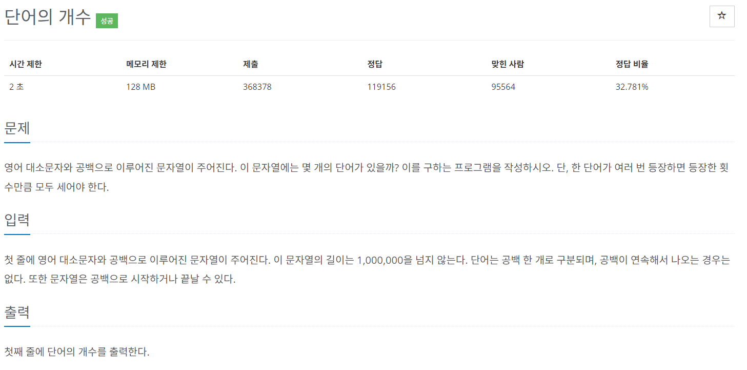 1152번: 단어의 개수